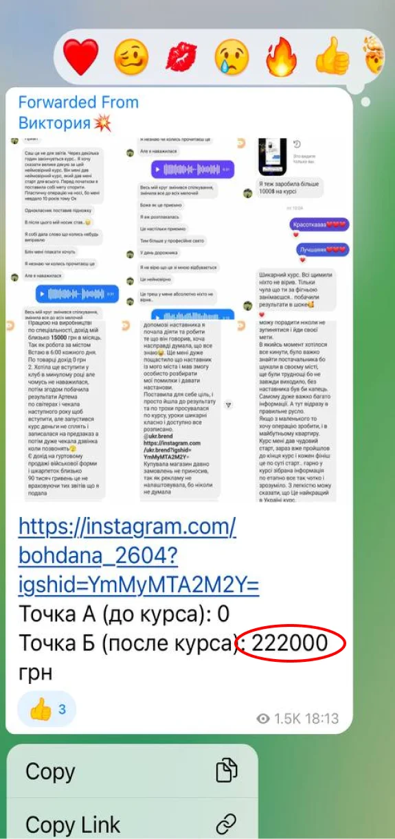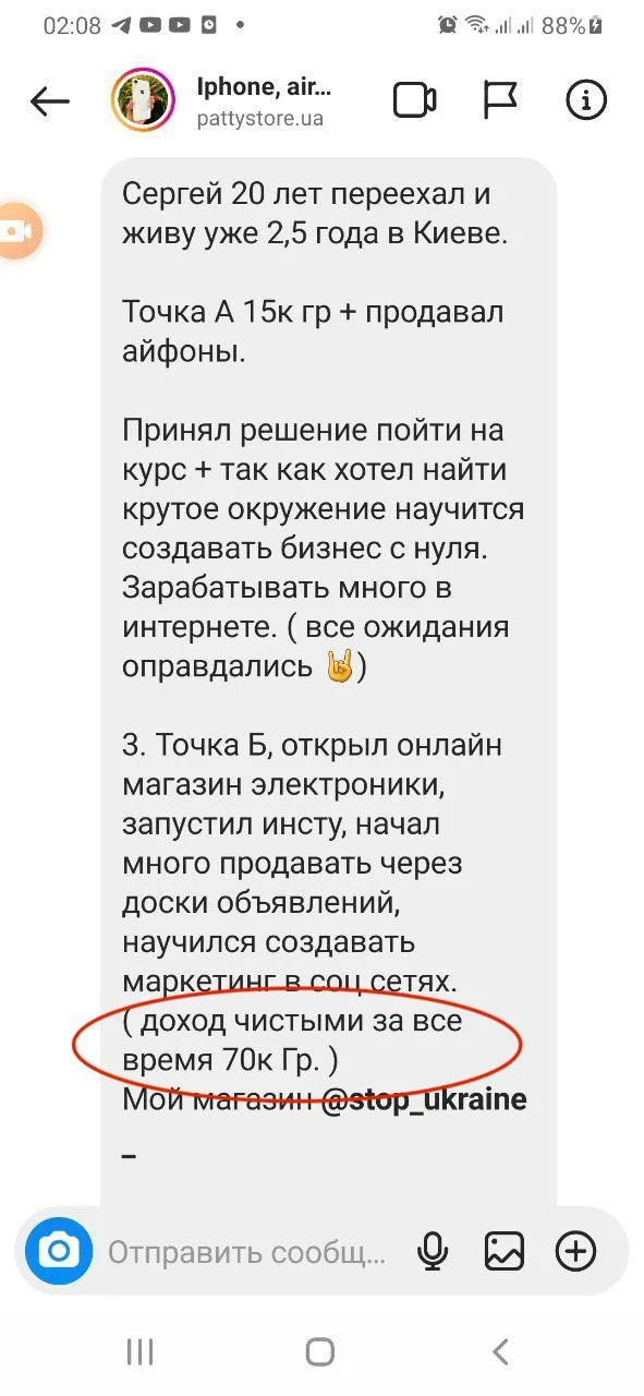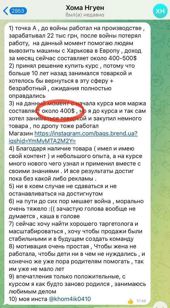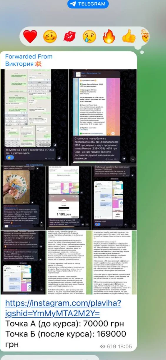 Точка Б: Запустила власний інстаграм-магазин і у перший місяць після навчання вийшла на дохід в $1000+. Обирає нову машину